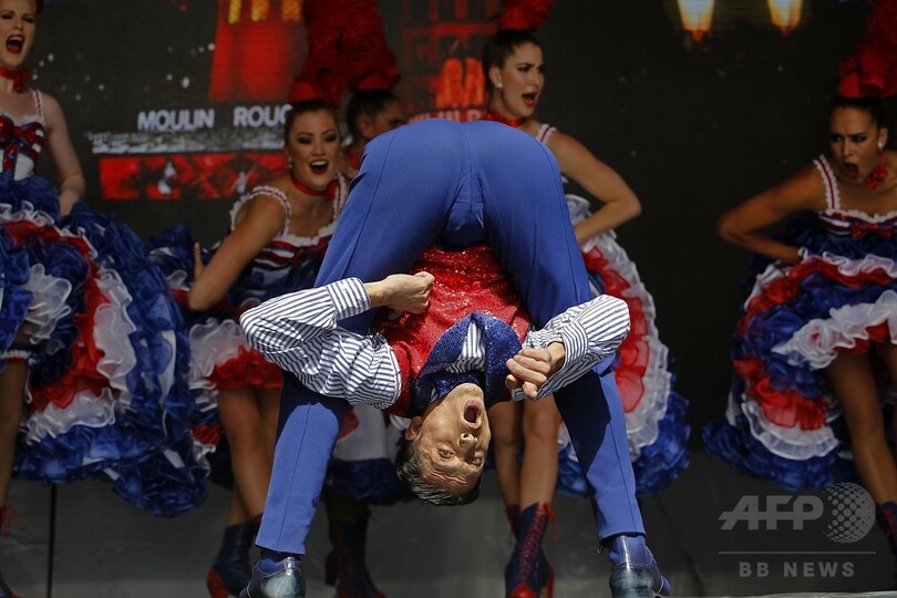 【9月27日 AFP】フランス・パリ(Paris)の老舗キャバレー「ムーランルージュ(Moulin Rouge)」の踊り子たちが25日、米ニューヨーク(New York)のタイムズ・スクエア(Times Square)に設けられたステージで華麗なダンスを披露した。仏文化のプロモーション活動「ベスト・オブ・フランス(Best of France)」の一環で行われたイベント。(c)AFP