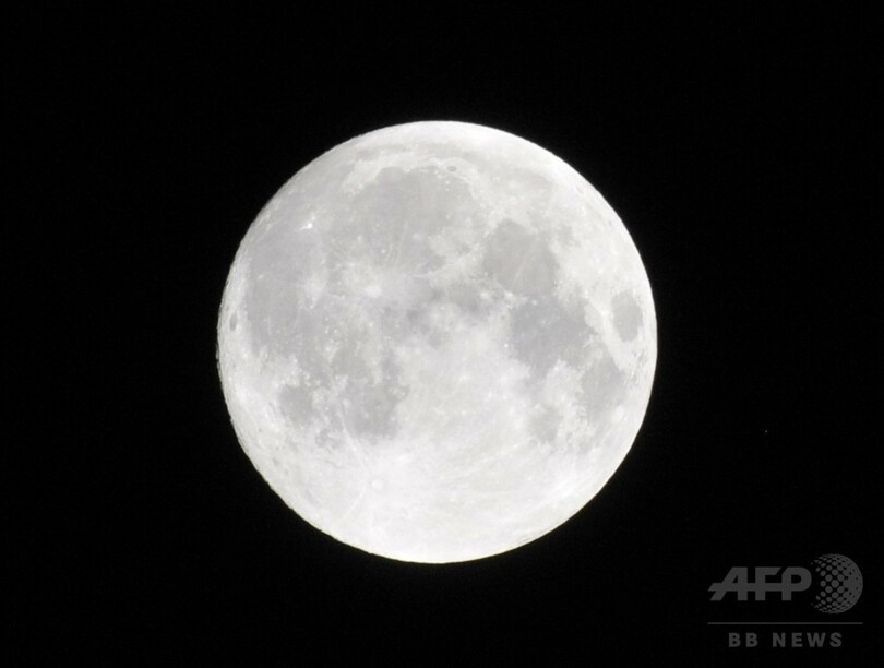 28日の「スーパームーン」は、遠地点の満月より30%明るく、大きさは14%ほど大きく見えるとされる。(c)AFPBB News