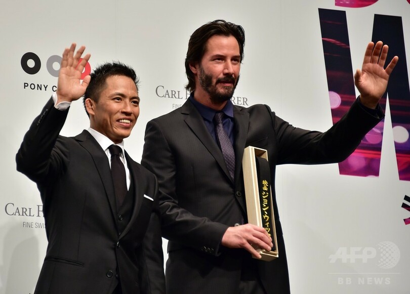 キアヌ・リーヴス、最新作をPR 柔道野村氏から黒帯受け取る