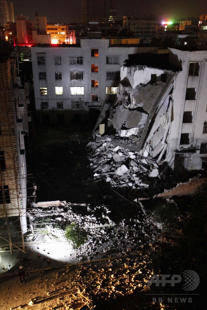 地元紙・南国早報(Nanguo Morning News)が警察からの情報として伝えたところによると、爆発は柳城県内の刑務所、政府庁舎、鉄道駅、病院、ショッピングセンターなど、少なくとも13か所で起きた。現場からの写真には爆発で一部が倒壊した6階建てのビルや、ガラス片やがれきが散乱する道路の様子が捉えられている。(c)AFP/Julien GIRAULT