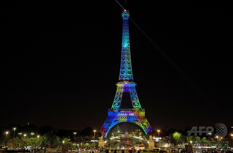 【10月1日 AFP】フランスの首都パリ(Paris)で9月30日、開催中のパリ・ファッションウイーク(Paris fashion week)の一環として、エッフェル塔(Eiffel Tower)が美しくライトアップされた。スローガンであるイベント名「ラ・モード・エーム・パリ(ファッションはパリを愛している、La Mode Aime Paris)」が描かれたほか、カラフルなライトで彩られるなど光のショーが繰り広げられた。(c)AFP