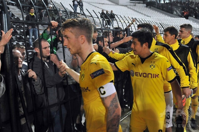ドルトムントは、この日行われた試合でガバラFK(Qabala FK)に2-1で勝利したクバン・クラスノダール(Kuban Krasnodar)に勝ち点1差をつけ、グループ首位に立っている。(c)AFP