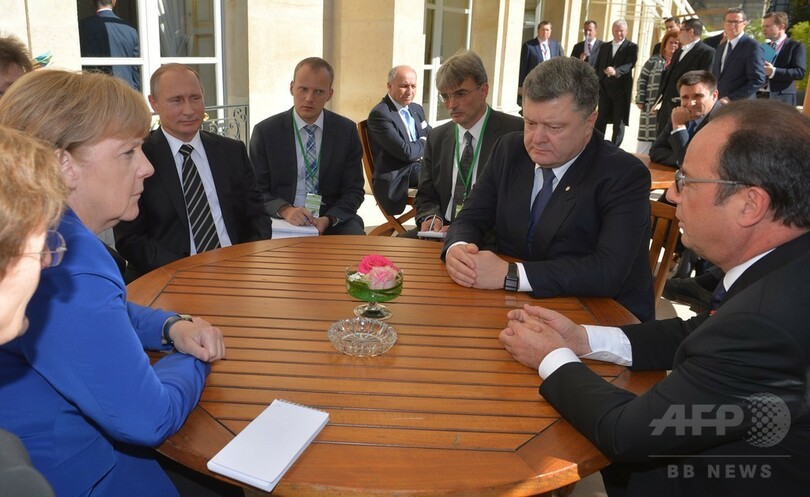 ウクライナ危機に終止符を打つため、ウクライナ、ロシア、フランス、ドイツの首脳は2日、仏パリ(Paris)で4か国首脳会議を行った。その際ウクライナのペトロ・ポロシェンコ(Petro Poroshenko)大統領は報道陣に対し、「撤収は明日始まる。欧州安保協力機構(OSCE)との調整など技術的な問題は全て解決した」と語っていた。