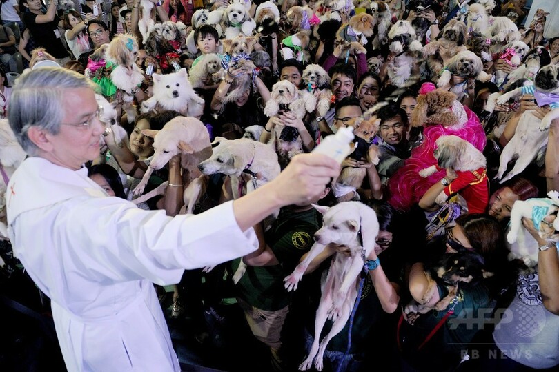 【10月5日 AFP】フィリピンの首都マニラ(Manila)で4日、「世界動物の日(World Animal Day)」を祝うファッションショー「ドッグズ・オン・ザ・キャットウオーク(DOGS ON THE CATWALK)」が開催され、着飾ったイヌたちが「キャットウオーク」に登場した。ファッションショーの後には、カトリック教会の神父がイヌたちに聖水の祝福を与えた。(c)AFP