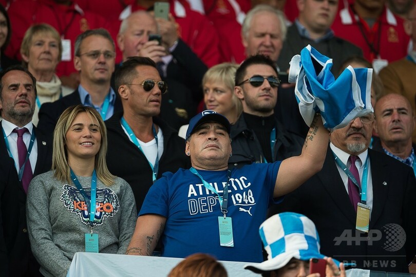 マラドーナ氏は得点の度に立ち上がり、ガッツポーズを連発して他の観客と抱き合った。