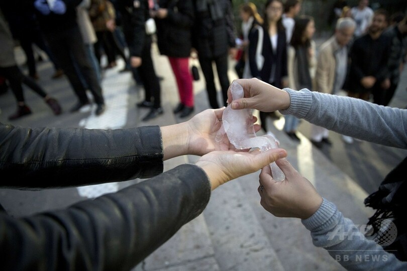 パリの街に氷の小像、夜の芸術祭「ニュイ・ブランシュ」