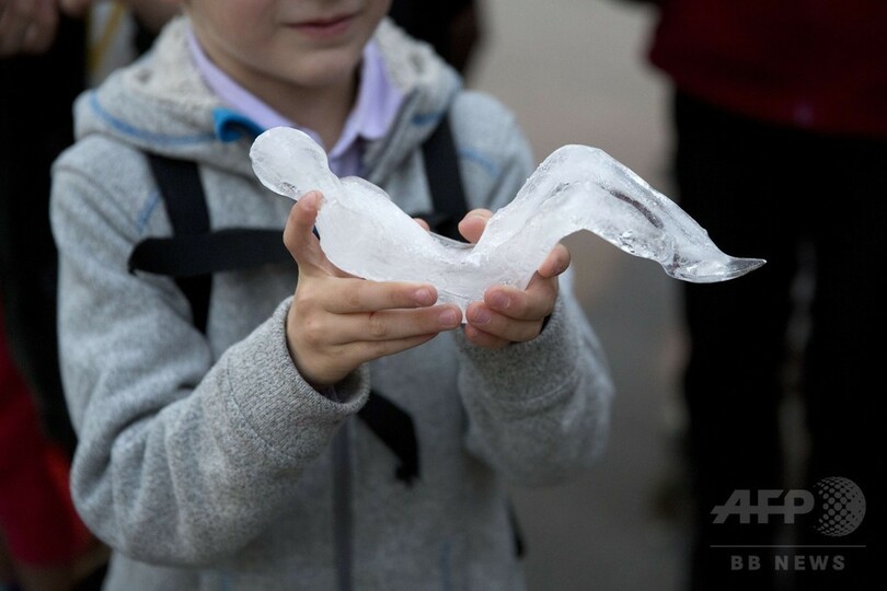 パリの街に氷の小像、夜の芸術祭「ニュイ・ブランシュ」