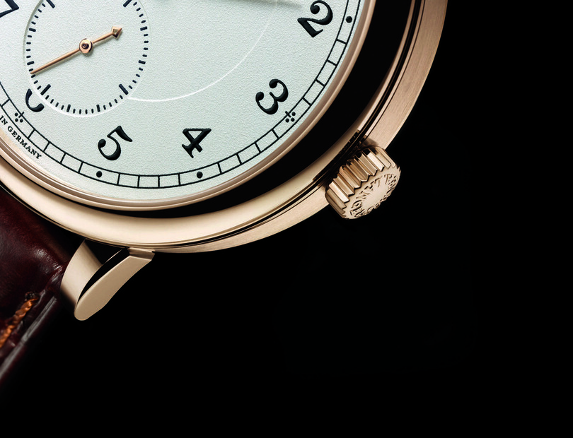 「1815“F.A.ランゲ生誕200周年エディション”」は、世界限定200本のレアウォッチ。直径40ミリ、ハニーカラーゴールド製ケースには、限定モデルであることを証明する「001/200」から「200/200」までの数字が刻まれている。