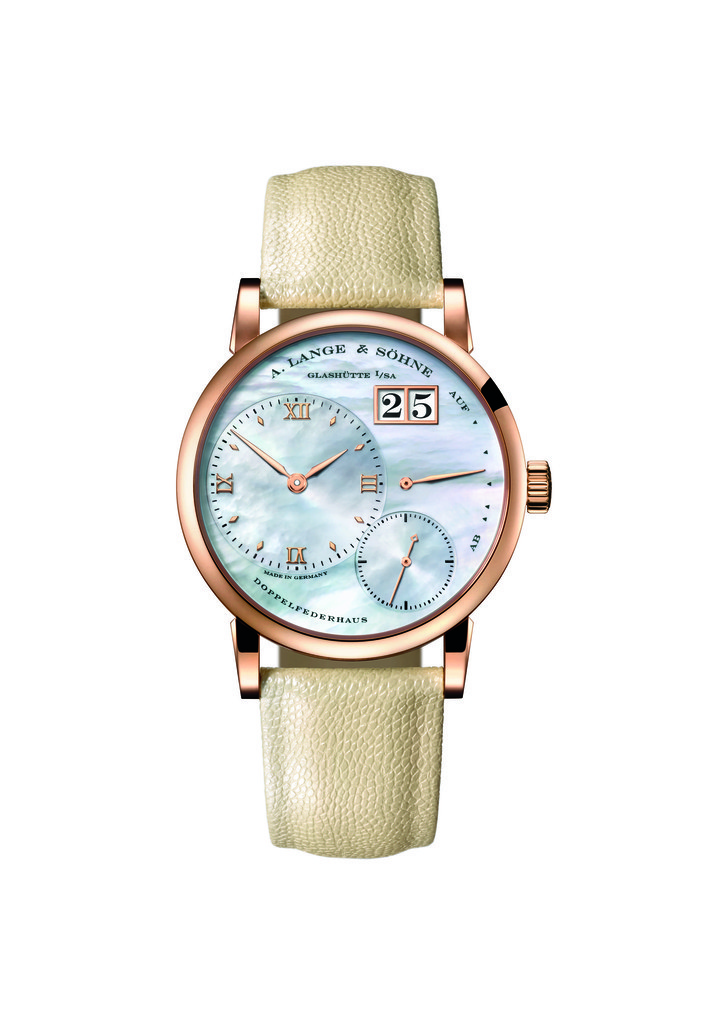 デザインに定評のある「リトル・ランゲ1」には、下層のブルーが透けて見えるマザーオブパール製ダイヤルのフェミニンなバリエーションが加わった。