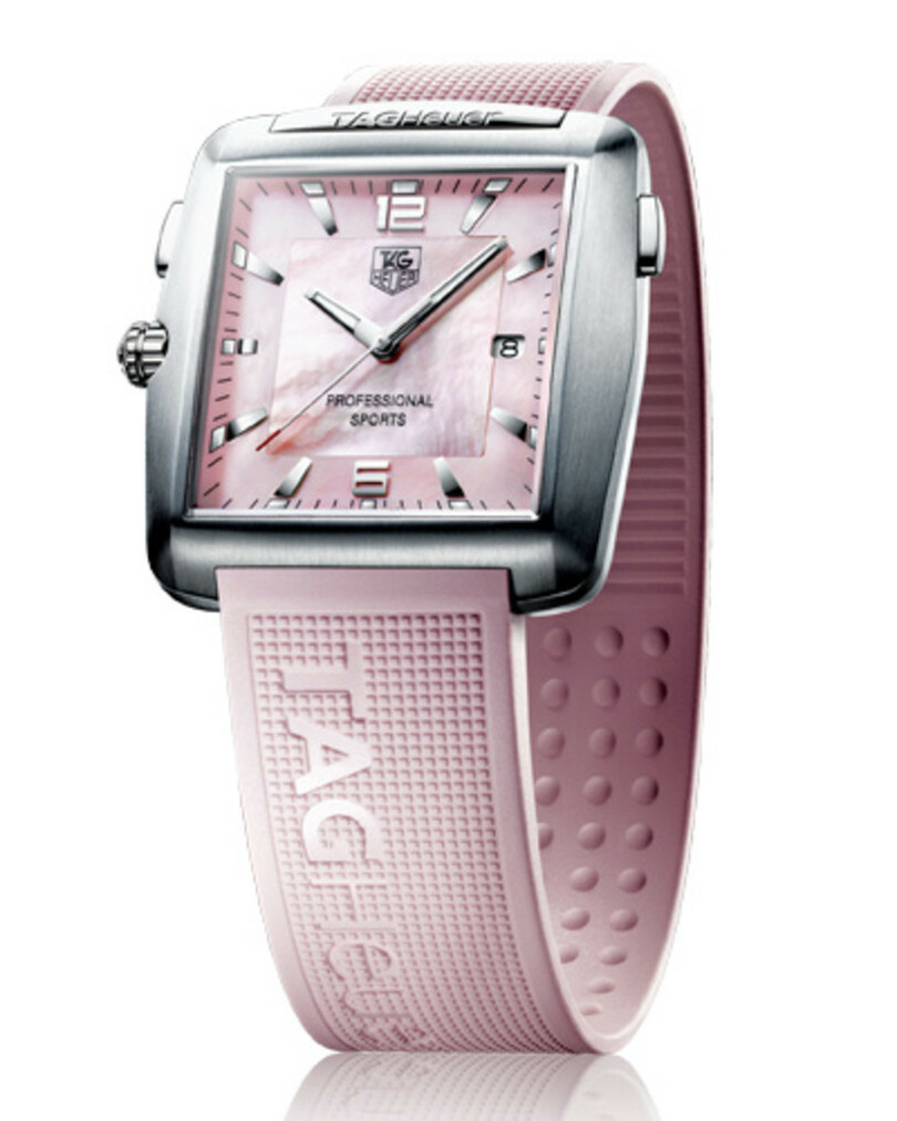 普段の試合ではブラックモデルを愛用する錦織選手だが、乳がん啓発キャンペーンのピンクリボン月間にあたる今月の試合では、ピンクのマザー・オブ・パールダイヤルのレディスモデルを身につけた。「タグ・ホイヤー」は、同モデルの売上の一部と拠出金を合わせ、乳がんの啓蒙活動に取り組む特定非営利活動法人キープ・ア・ブレスト・ジャパンに寄付する。
