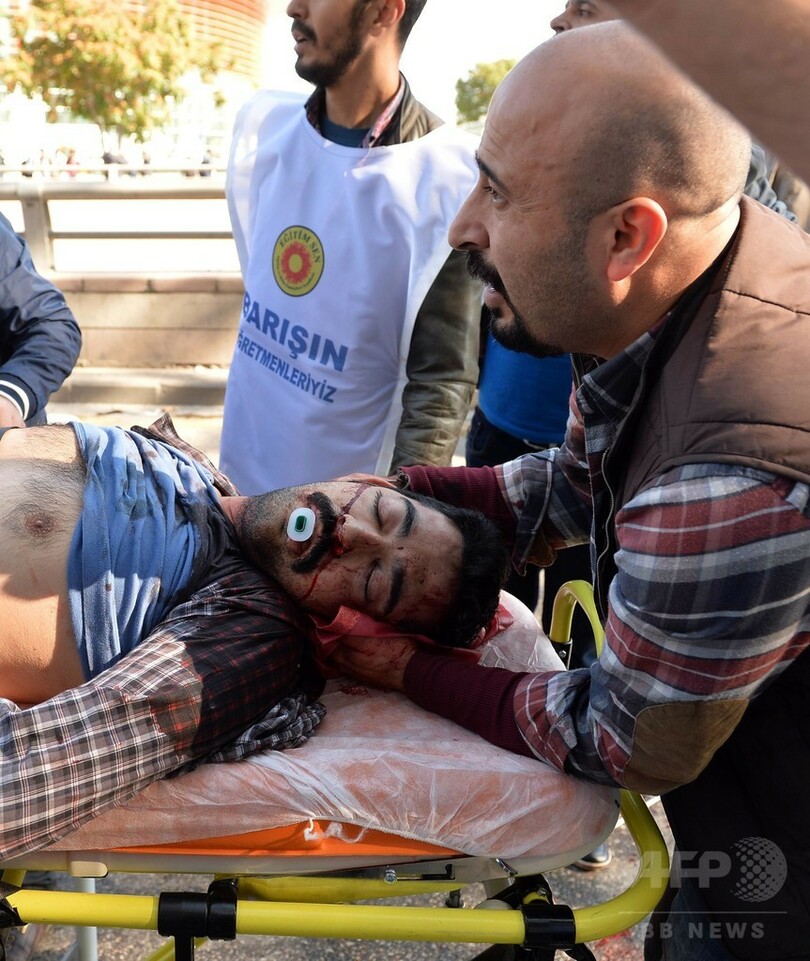 【10月10日 AFP】(一部更新、写真追加)トルコの首都アンカラ(Ankara)で10日、ターミナル駅付近で開催される平和集会を狙った2度の爆発があり、少なくとも30人が死亡、126人が負傷した。トルコ内務省が発表した。
