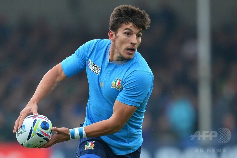 父の出生地であるスコットランドよりも、母の出生地イタリアの代表を選んだアランは、この試合で1トライを記録すると、キックでも合計12得点を稼ぎ、故障者に悩まされたイタリアを2019年大会に導いた。(c)AFP