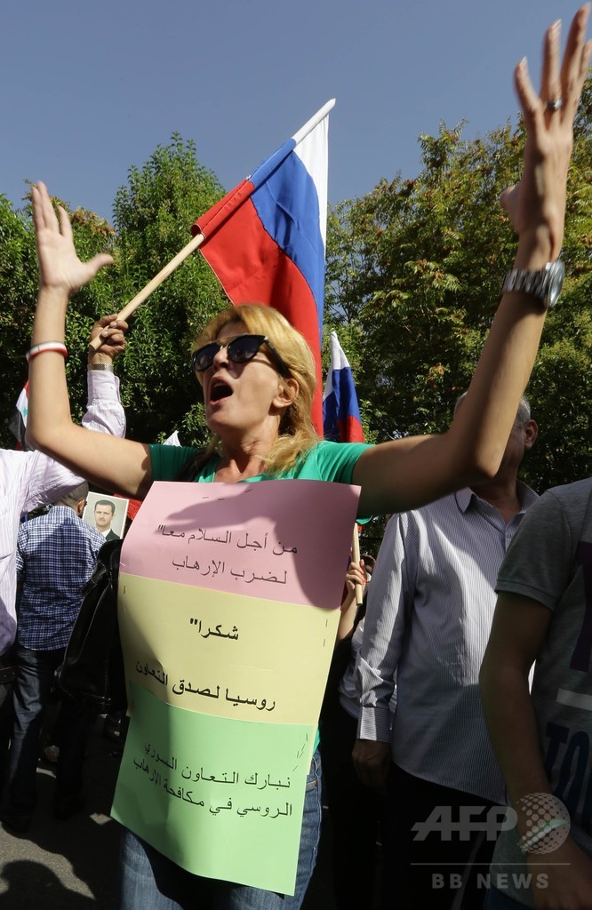 在シリア露大使館にロケット弾、空爆支持の約300人がパニック