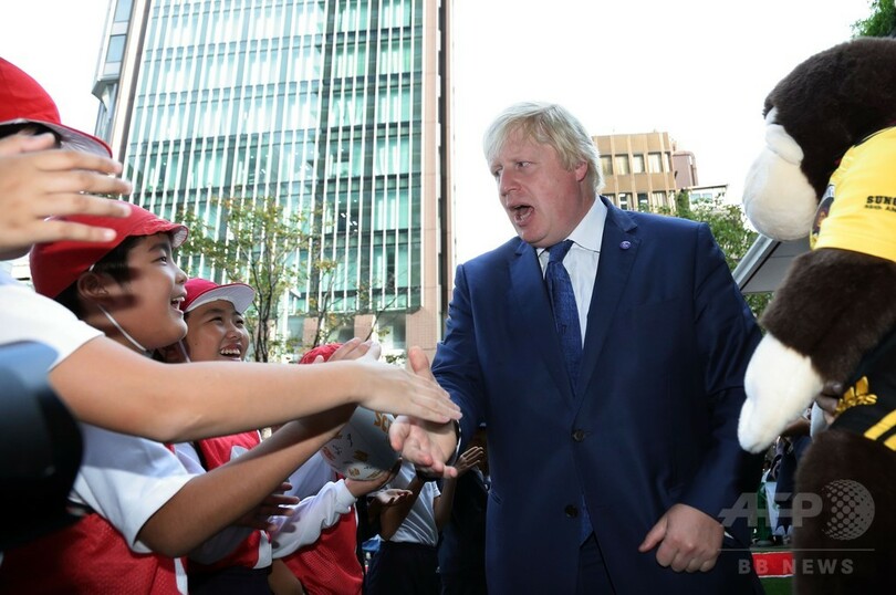 【10月15日 AFP】訪日中のボリス・ジョンソン(Boris Johnson)ロンドン(London)市長が15日、都内で「2019年ラグビーW杯日本大会(Rugby World Cup 2019)」のプロモーションイベントに参加し、小学生たちとラグビーを楽しんだ。(c)AFP