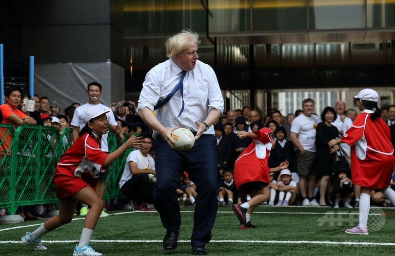 【10月15日 AFP】訪日中のボリス・ジョンソン(Boris Johnson)ロンドン(London)市長が15日、都内で「2019年ラグビーW杯日本大会(Rugby World Cup 2019)」のプロモーションイベントに参加し、小学生たちとラグビーを楽しんだ。(c)AFP