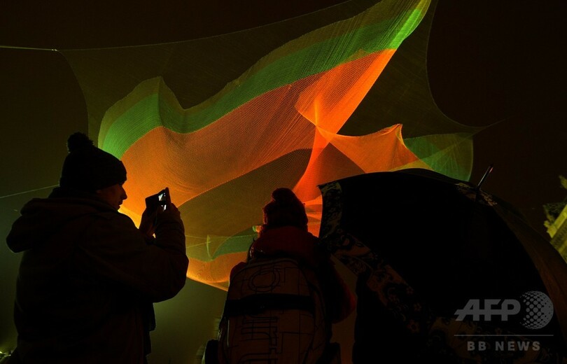地元の芸術家に加え、米現代芸術家ジャネット・エシェルマン(Janet Echelman)氏など海外のアーティストもイベントに参加。ビデオのマッピング・プロジェクションや、光で彫刻を映し出すオーディオビジュアル・アート、コンサートやパフォーマンスなど光の芸術が夜のプラハの通りを華やかに彩った。(c)AFP