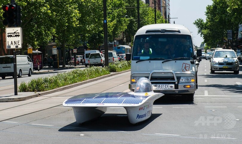 レースでは北部ダーウィン(Darwin)から南部アデレードまでの約3000キロの走行時間を競い、25か国からソーラーカー45台が参戦した。(c)AFP