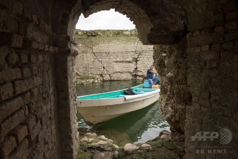 教会は数週間前から水面に出現し、高さ約15メートルの礼拝堂の上から半分くらいまでが姿を見せている。屋根の失われた石壁の上では鳥たちが羽を休め、植物が生えつつある。