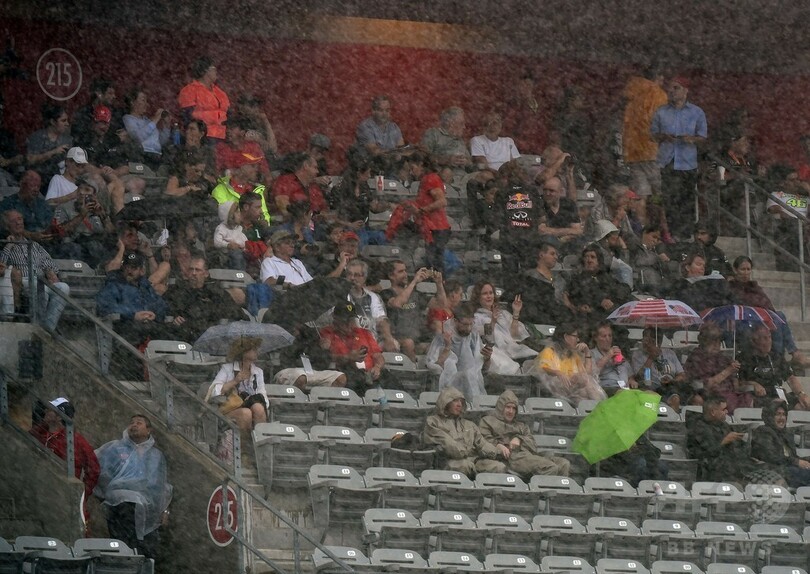 FOA(Formula One Administration)のバーニー・エクレストン(Bernie Ecclestone)会長は、「われわれにできることはない。われわれにはやることがあるので構わないが、観客の方には申し訳なく思う。彼らはレースを楽しむためにここに来て、雨の中ずぶぬれになってしまった」と語っている。(c)AFP