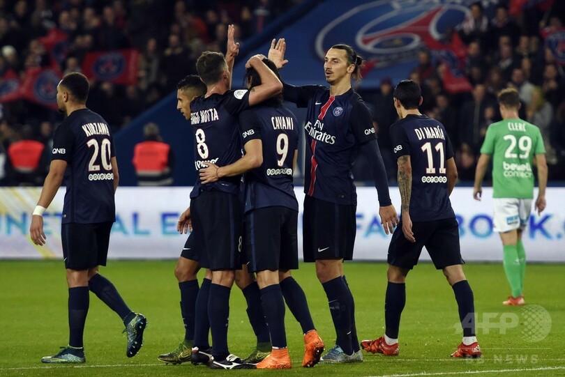 ズラタン・イブラヒモビッチ(Zlatan Ibrahimovic)らの得点で勝利したPSGは、2位以下との勝ち点差を7に開いた。