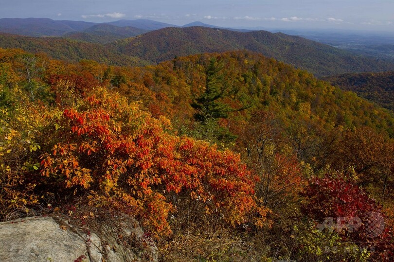 【10月26日 AFP】米バージニア(Virginia)州のシェナンドーア国立公園(Shenandoah National Park)は、紅葉シーズンを迎え、多くの観光客で賑わいをみせている。