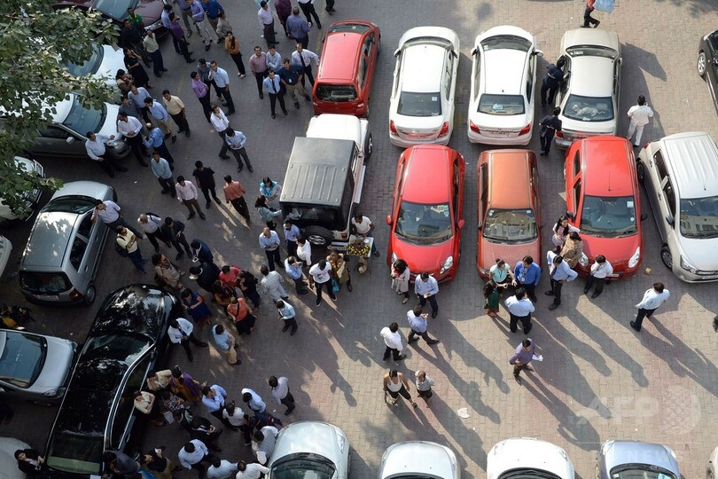 インドの首都ニューデリー(New Delhi)を含むデリー(Delhi)首都圏では、人々が建物の中から競うようにして街路に飛び出す様子が目撃された。(c)AFP