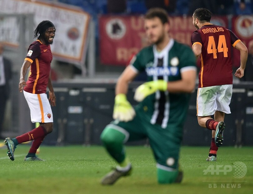 この結果、ローマはリーグ首位の座を守り、ナポリ(SSC Napoli)、フィオレンティーナ(Fiorentina)、インテル(Inter Milan)との勝ち点2差を維持している。(c)AFP