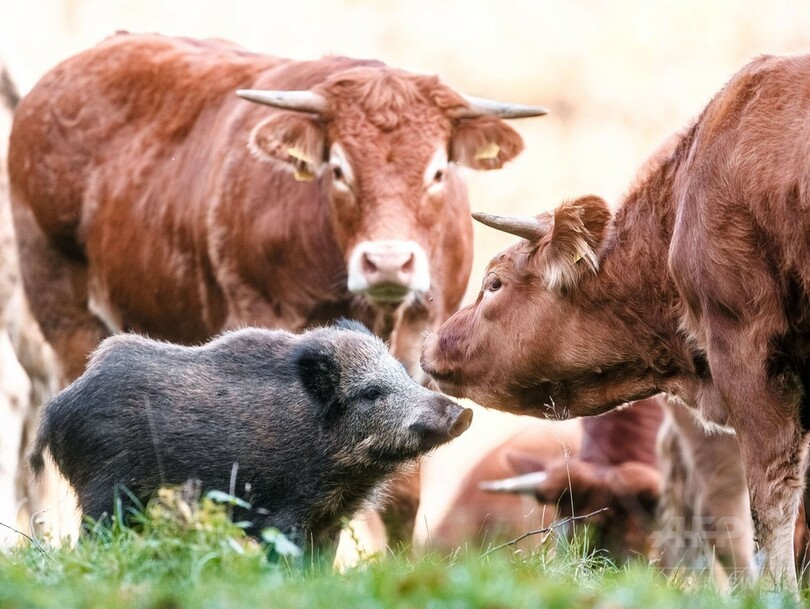 ニュース ライフ こぼれ話 牛と暮らすイノシシの子、すっかりなじんでリーダー気分? 2015年10月30日 8:47 発信地:メーレル/ドイツ [ ヨーロッパ ドイツ ] このニュースをシェア ‹ › ❮ 4/10 ❯ ドイツ北部メーレルにある牧草地で、牛の群れにまざるイノシシの子供(2015年10月28日撮影)。(c)AFP/DPA/MARKUS SCHOLZ 画像作成中 ! 【10月30日 AFP】ドイツ北部メーレル(Moerel)の牧草地で、牛の群れにまざって生活するイノシシの子供。1か月前に群れに加わり、その後はグループの一員として受け入れられた。 (c)AFP ライフ 一覧へ> メディア・報道関係・法人の方向け 写真・動画 購入のお問合せ>