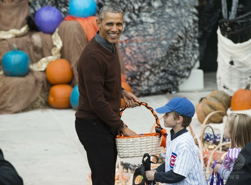 【10月31日 AFP】ハロウィーンを翌日に控えた30日、バラク・オバマ(Barack Obama)米大統領とミシェル・オバマ(Michelle Obama)大統領夫人は、米首都ワシントン(Washington D.C.)のホワイトハウス(White House)南側の庭「サウスローン(South Lawn)」で、訪れた子どもたちにお菓子を手渡した。(c)AFP