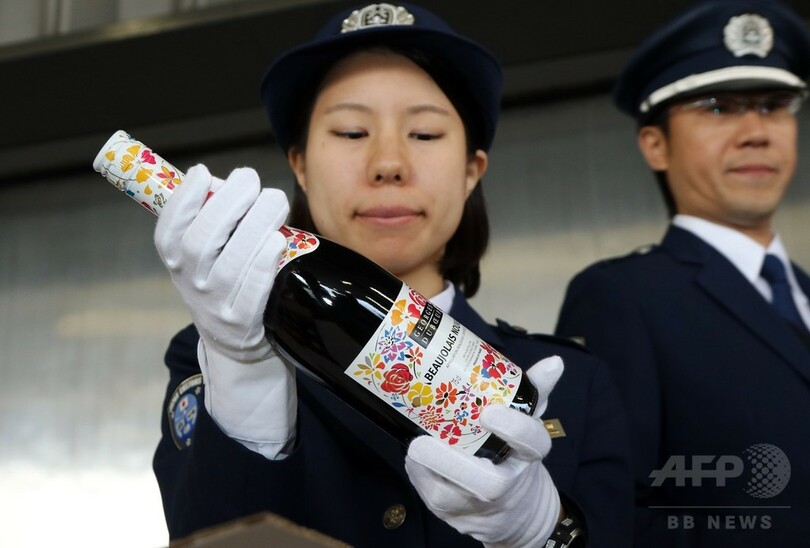 【10月31日 AFP】仏ボージョレ(Beaujolais)産ワインの新酒「ボージョレ・ヌーボー(Beaujolais Nouveau)」の初荷が31日、羽田空港(Haneda Airport)に到着し、税関職員が仏パリ(Paris)から届いた約3200本のボトルの検査を行った。今年の解禁日は11月19日。(c)AFP