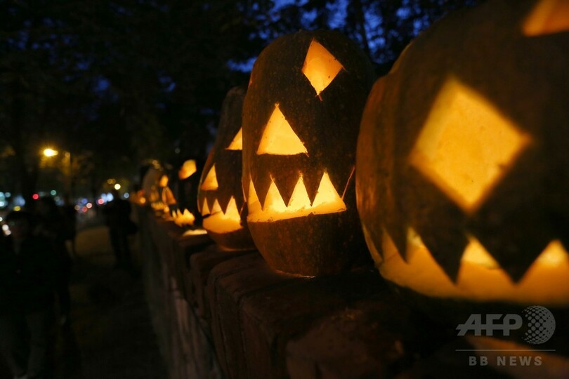 【11月1日 AFP】ハロウィーンの10月31日夜、世界各地の街角などでお化けやゾンビなど、さまざまな衣装や特殊メークで仮装した人々が見られた。