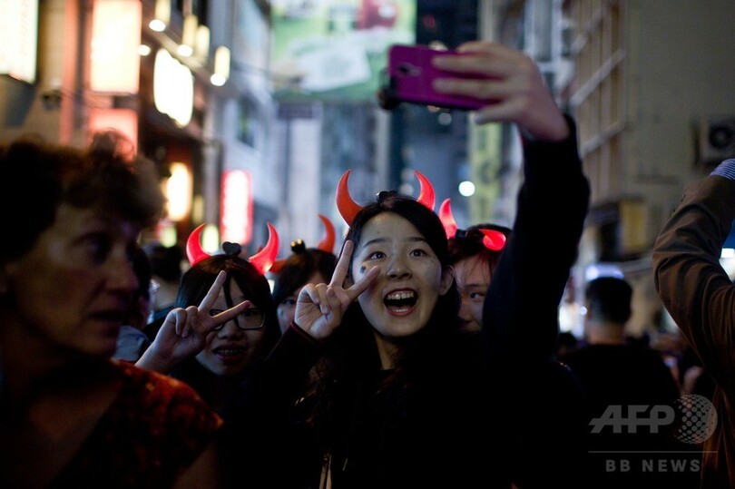 【11月1日 AFP】ハロウィーンの10月31日夜、世界各地の街角などでお化けやゾンビなど、さまざまな衣装や特殊メークで仮装した人々が見られた。