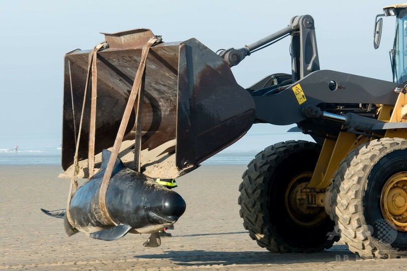 【11月3日 AFP】フランス北部カレー(Calais)で2日、ゴンドウクジラ10頭の群れが海岸に乗り上げているのが見つかった。この群れのリーダーだった雄のクジラが死んだ後、自発的に乗り上げた可能性があると専門家は指摘している。海岸で発見されたクジラのうち、これまでに7頭の死が確認されている。