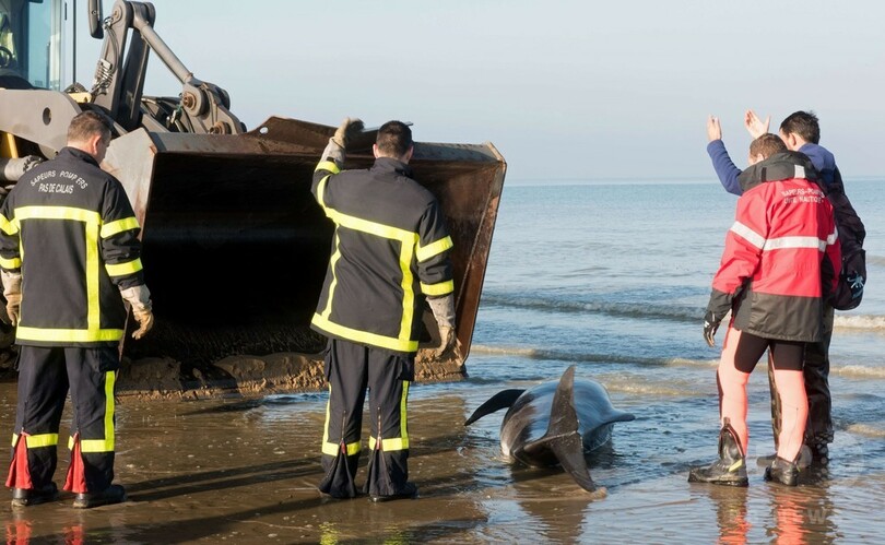 クジラ10頭座礁、死んだリーダー追って?フランス