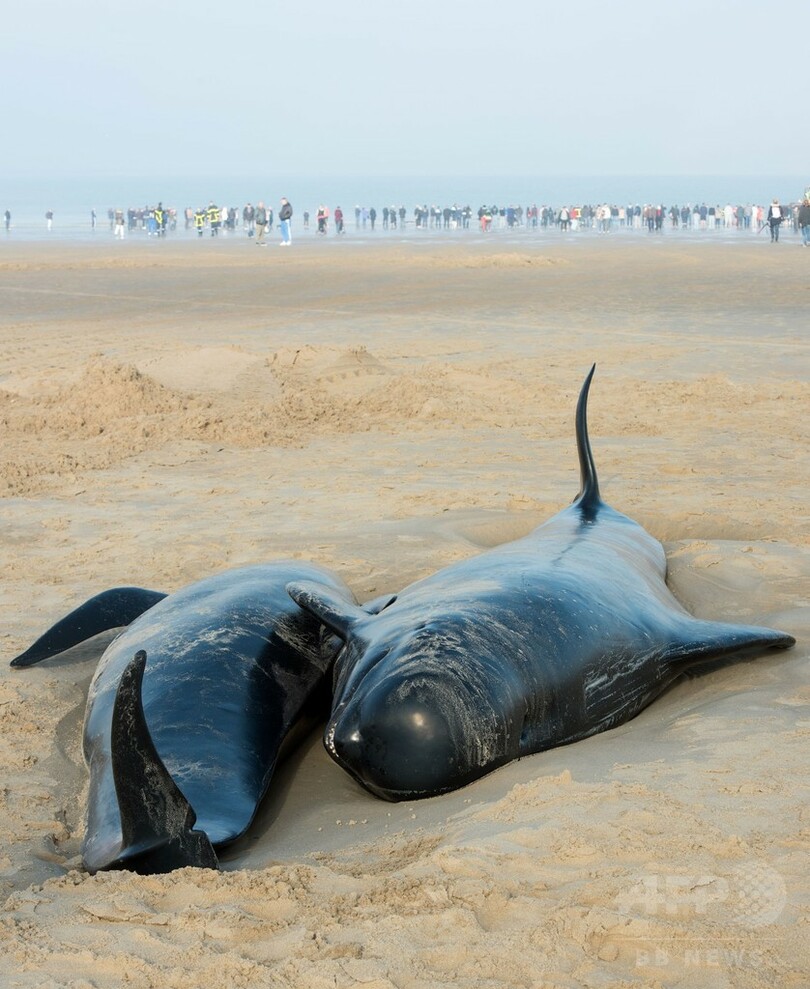 【11月3日 AFP】フランス北部カレー(Calais)で2日、ゴンドウクジラ10頭の群れが海岸に乗り上げているのが見つかった。この群れのリーダーだった雄のクジラが死んだ後、自発的に乗り上げた可能性があると専門家は指摘している。海岸で発見されたクジラのうち、これまでに7頭の死が確認されている。
