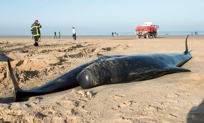 クジラ10頭座礁、死んだリーダー追って?フランス