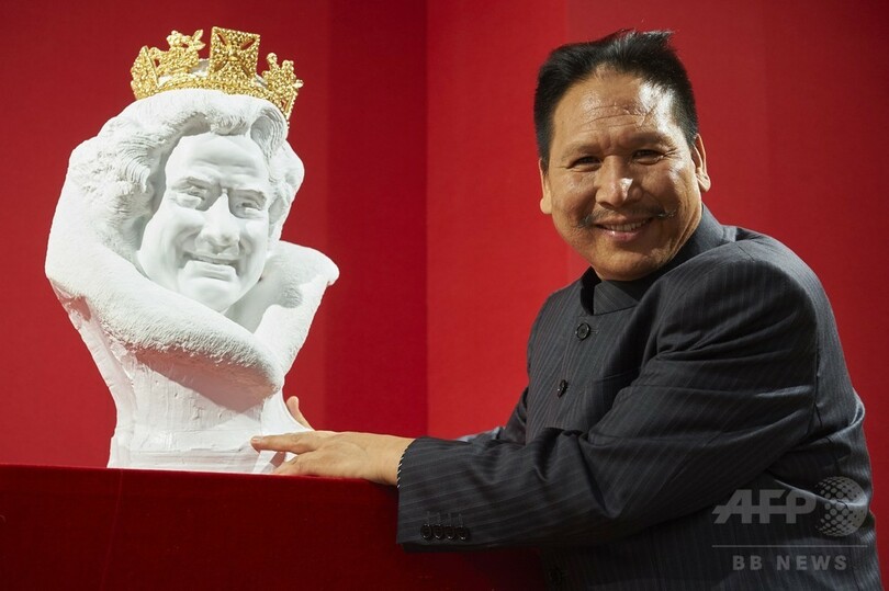 中国人彫刻家が制作の英女王像、T・ハンクスに似ていると話題に