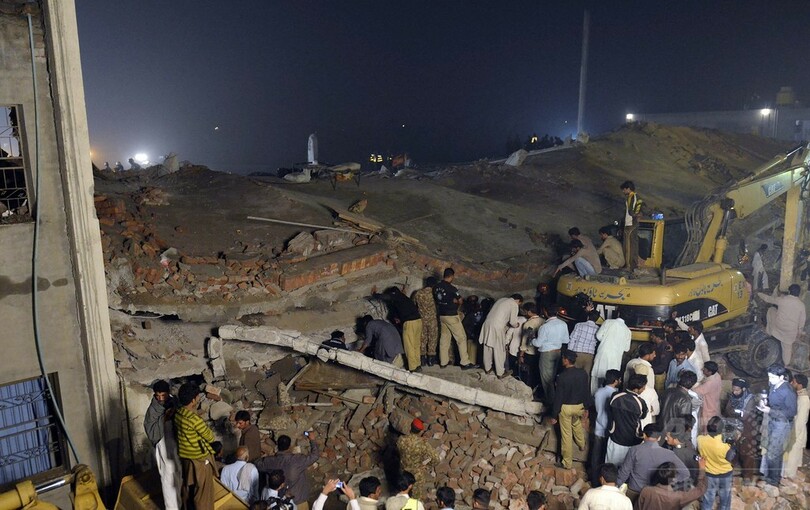 事故の2週間ほど前の10月26日には隣国アフガニスタンで起きたマグニチュード(M)7.5の強い地震がパキスタンを襲い、両国合わせて390人近くが死亡、数千棟の家屋が倒壊したほか、大きなビルでも建築構造に損傷を与えていた。パンジャブ州のシャバズ・シャリフ(Shahbaz Sharif)州首相は、工場の構造がこの地震で損傷していた可能性もあるとしている。(c)AFP/Waqar GILLANI