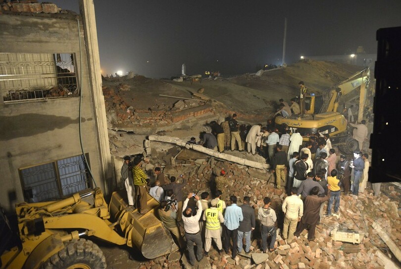 事故の2週間ほど前の10月26日には隣国アフガニスタンで起きたマグニチュード(M)7.5の強い地震がパキスタンを襲い、両国合わせて390人近くが死亡、数千棟の家屋が倒壊したほか、大きなビルでも建築構造に損傷を与えていた。パンジャブ州のシャバズ・シャリフ(Shahbaz Sharif)州首相は、工場の構造がこの地震で損傷していた可能性もあるとしている。(c)AFP/Waqar GILLANI