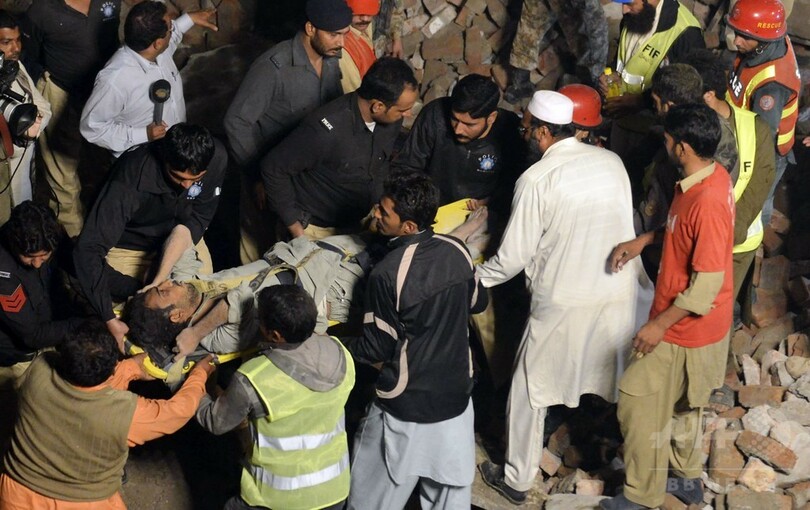 パキスタンで工場倒壊、18人死亡 100人下敷きに