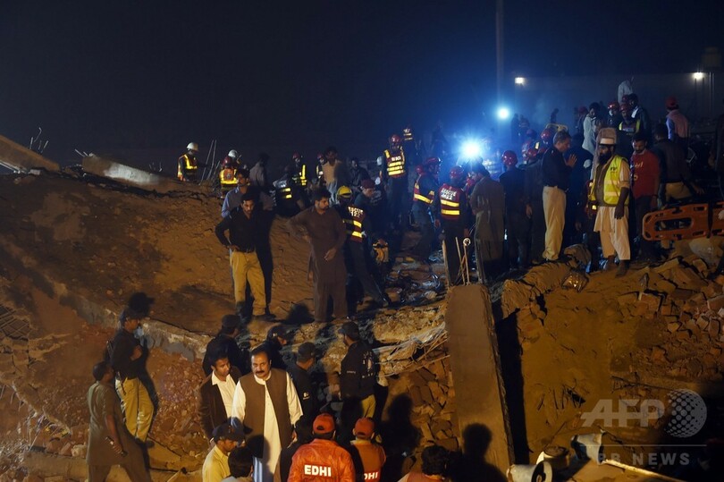 【11月5日 AFP】パキスタン東部パンジャブ(Punjab)州の州都ラホール(Lahore)郊外で4日、4階建てのポリ袋製造工場の屋根が崩落し、当局によると少なくとも18人が死亡した。現在も約100人ががれきの下敷きになっているとみられる。