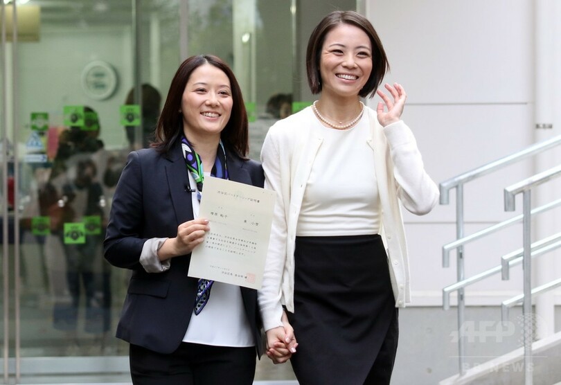 【11月5日 AFP】東京都渋谷区は5日、同性カップルを結婚に相当する関係と認める「パートナーシップ証明書」の交付を開始した。