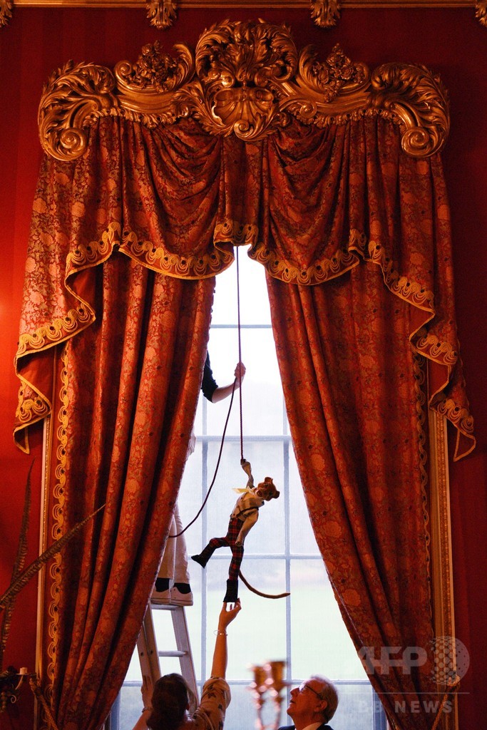 【11月7日 AFP】英イングランド(England)中部ベークウェル(Bakewell)近郊で一般公開されているデボンシャー公爵夫妻の邸宅「チャッツワース・ハウス」では、クリスマスシーズンの飾り付けが行われている。