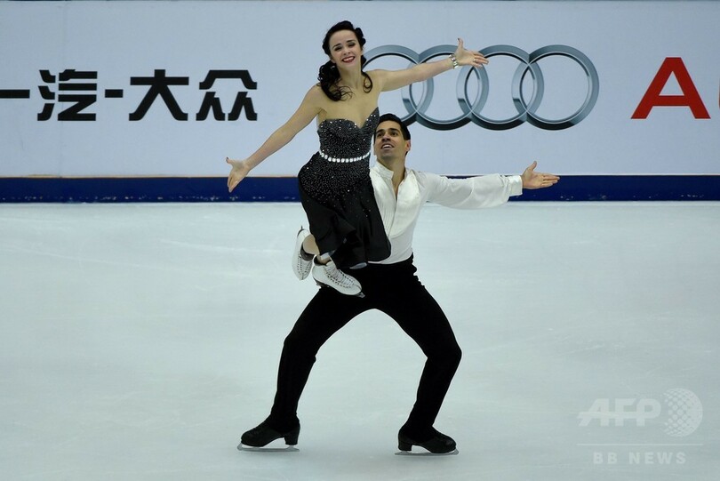 米国のマディソン・チョーク(Madison Chock)/エヴァン・ベイツ(Evan Bates)組が合計169.16点で2位、ロシアのエレーナ・イリニフ(Elena Ilinykh)/ルスラン・ジガンシン(Ruslan Zhiganshin)組が159.00点で3位に続いている。(c)AFP