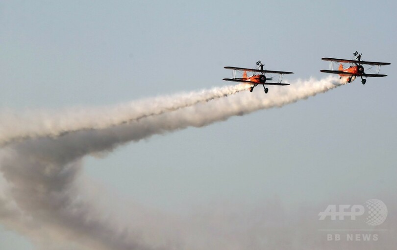 【11月9日 AFP】アラブ首長国連邦(UAE)のドバイ(Dubai)で8日、2年ごとに開催されるドバイ航空ショー(Dubai Airshow)が開幕し、同国空軍のアクロバット飛行チーム「アル・フルサン(Al-Fursan)」をはじめとする各国のチームによる曲芸飛行や、各社の戦闘機による展示飛行などが行われた。前回のような大型発注の見込みは薄いとされる中、穏やかな出足となった。(c)AFP