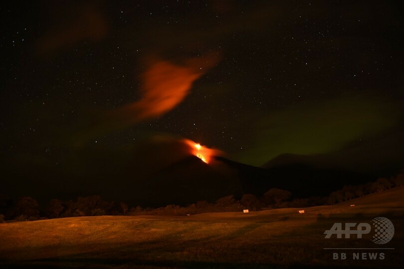 スペイン植民地時代の都市アンティグア(Antigua)に近く、首都グアテマラ市(Guatemala City)の約40キロ南西に位置するフエゴ火山は、夜間にかけて活動を活発化。噴煙が上空高く上がり、溶岩が山の斜面を流れ下ったほか、小規模な地震も観測された。同火山はスペイン語で「火」を意味する。