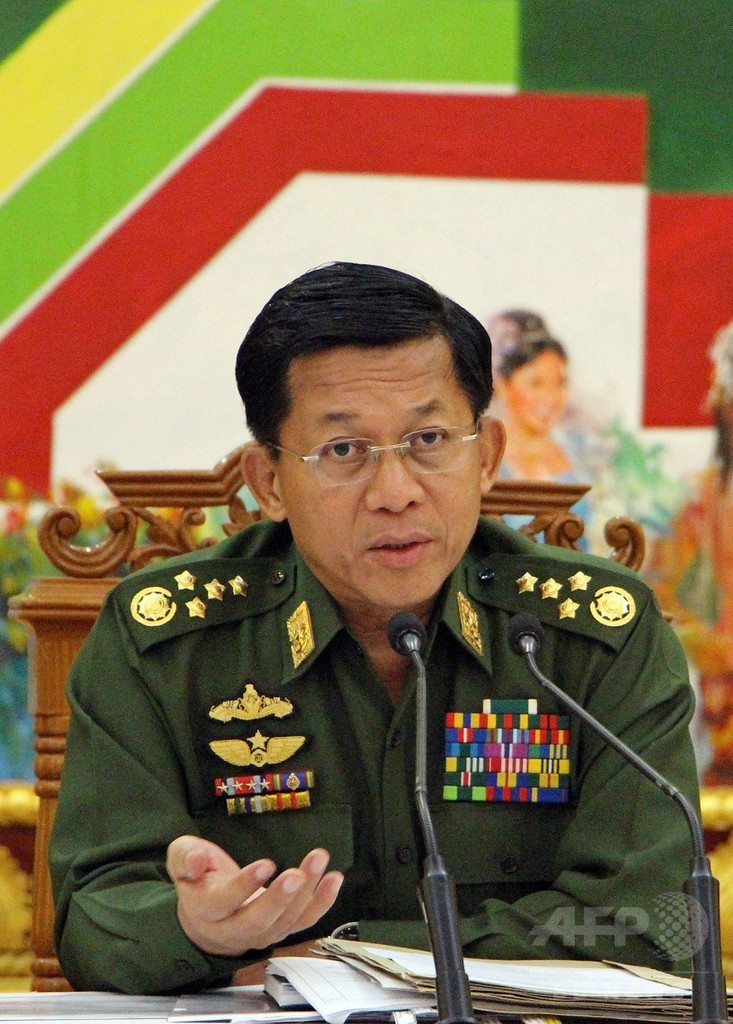 【11月12日 AFP】ミャンマー国軍司令官ミン・アウン・フライン(Min Aung Hlaing)将軍は、民政移管後初となる8日の総選挙でアウン・サン・スー・チー(Aung San Suu Kyi)氏率いる最大野党、国民民主連盟(NLD)の圧勝が確実視される中、選挙後に誕生する新政権との協力を約束した。