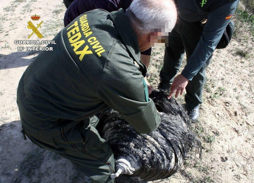 最初の落下物は、黒い蜂の巣のような奇妙な球体で、ムルシア(Murcia)州の町ムラ(Mula)で先週、発見された。そして先週末、見た目は似ているがより小さな物体が、30キロ離れた同州カラスパラ(Calasparra)でも見つかった。