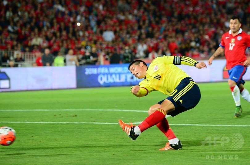 前半終了間際にチリのアルトゥーロ・ビダル(Arturo Vidal)に先制を許したコロンビアは、先月行われた予選2試合を太ももの負傷により欠場していたロドリゲスが後半23分にルーズボールを押し込んでゴールし、敵地サンティアゴ(Santiago)の観衆を沈黙させた。