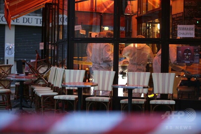 ニュース 社会 パリ連続襲撃の死者128人に、負傷者180人 2015年11月14日 19:33 発信地:パリ/フランス [ ヨーロッパ フランス ] このニュースをシェア ‹ › ❮ 2/3 ❯ 仏パリの連続襲撃事件の現場の一つとなったカフェで、事件から一夜明けた14日も続く現場検証(2015年11月14日撮影)。(c)AFP/KENZO TRIBOUILLARD 画像作成中 ! 【11月14日 AFP】(一部更新)仏首都パリ(Paris)で13日夜に起きた連続襲撃事件の犠牲者は、少なくとも死者128人、負傷者180人に上ることが警察関係者への取材で分かった。負傷者のうち80人が重体となっている。 犠牲者数は、2004年にスペインで起きたマドリード(Madrid)列車爆破テロ事件以来、欧州で最大となる。実行犯は少なくとも8人いたとみられており、全員が自爆用ベストを着用していた。(c)AFP 社会 一覧へ> メディア・報道関係・法人の方向け 写真・動画 購入のお問合せ>